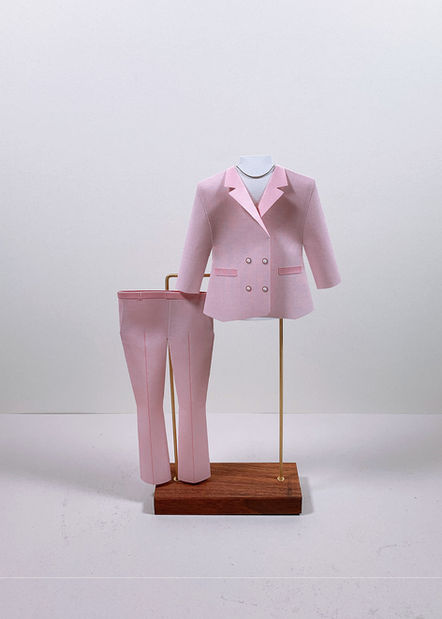 立領腰身襯托身型,搭配珠寶項鍊顯貴氣。